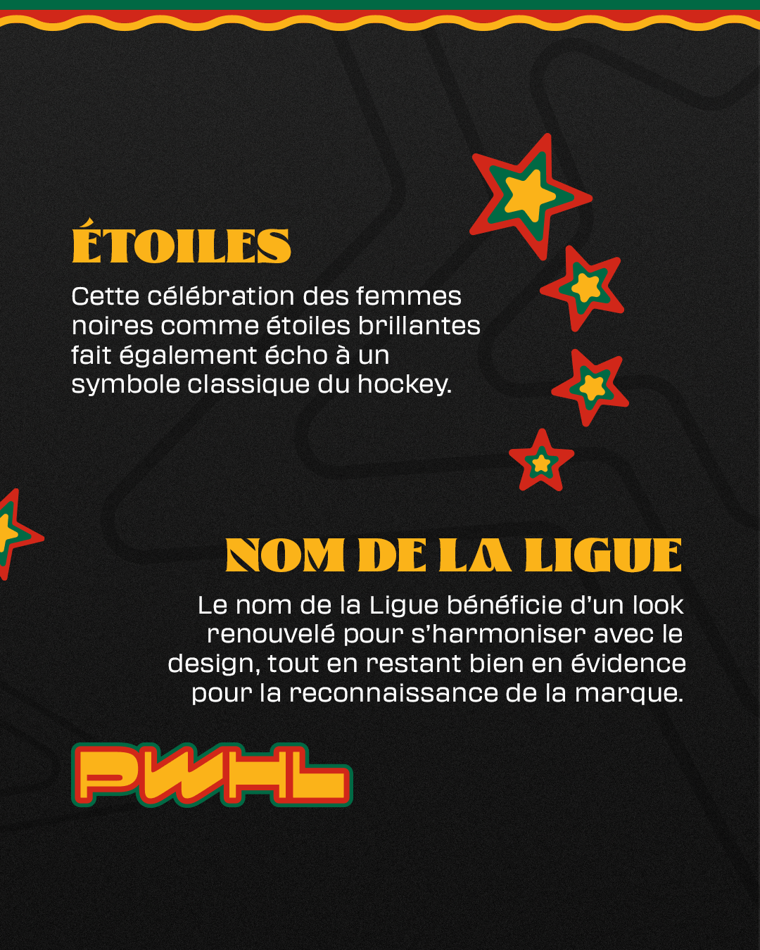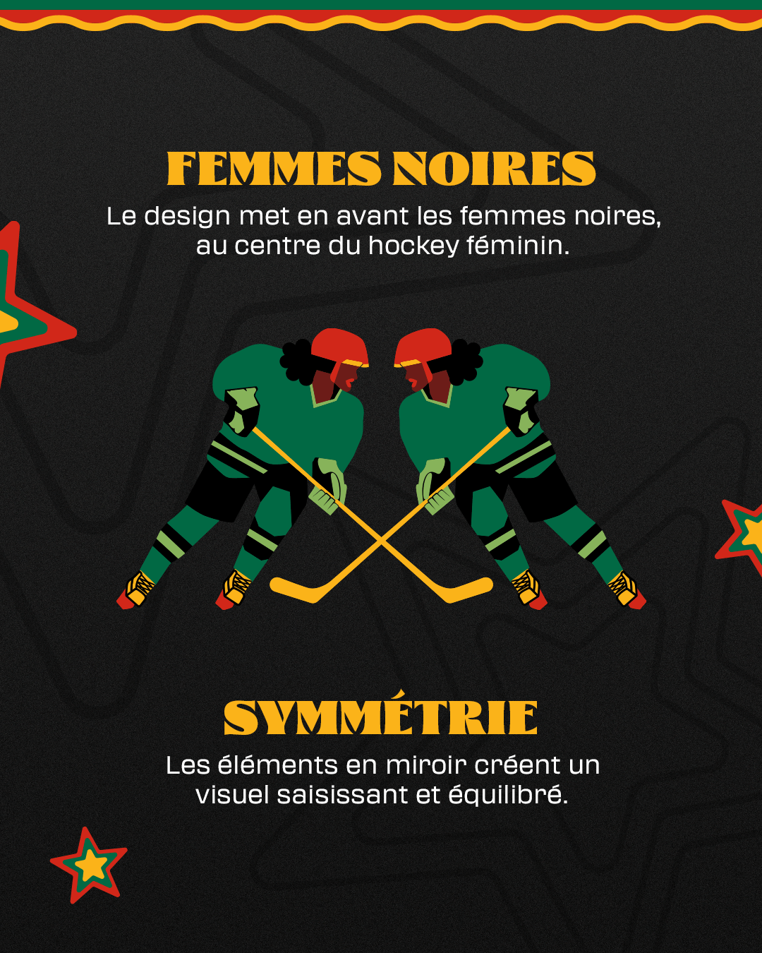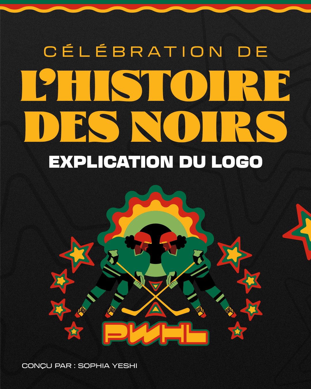 Le logo de la célébration de l’histoire des Noirs de cette année a été créé en collaboration avec Sophia Yeshi, une artiste multidisciplinaire dont le travail met de l’avant le récit, l’identité et la fierté culturelle. Son design reflète la force, la créativité et l’interconnexion des communautés noires, tout en honorant le passé et en se tournant vers l’avenir du hockey.